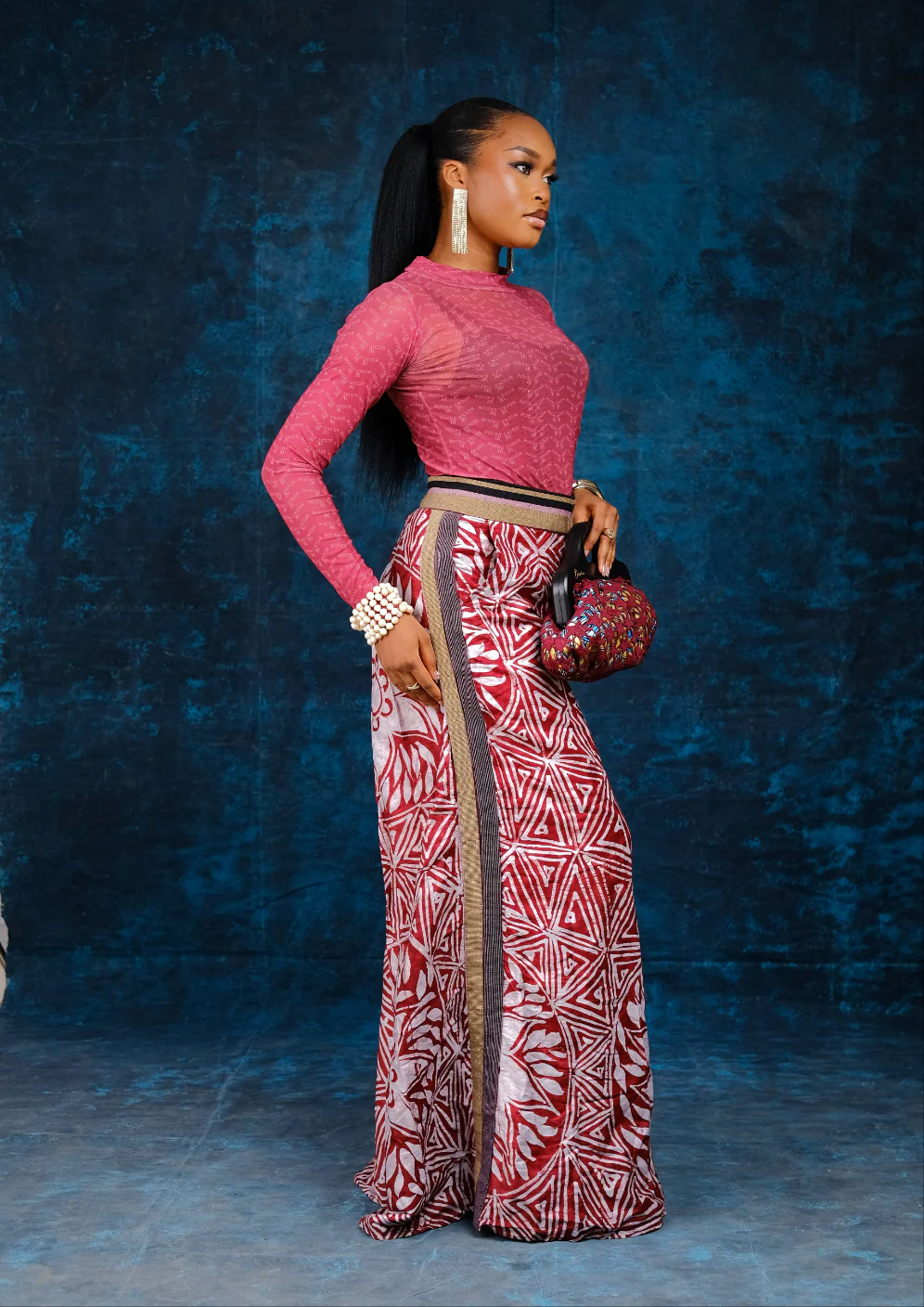 - Pants: hand dyed cotton batik and aso oke mix